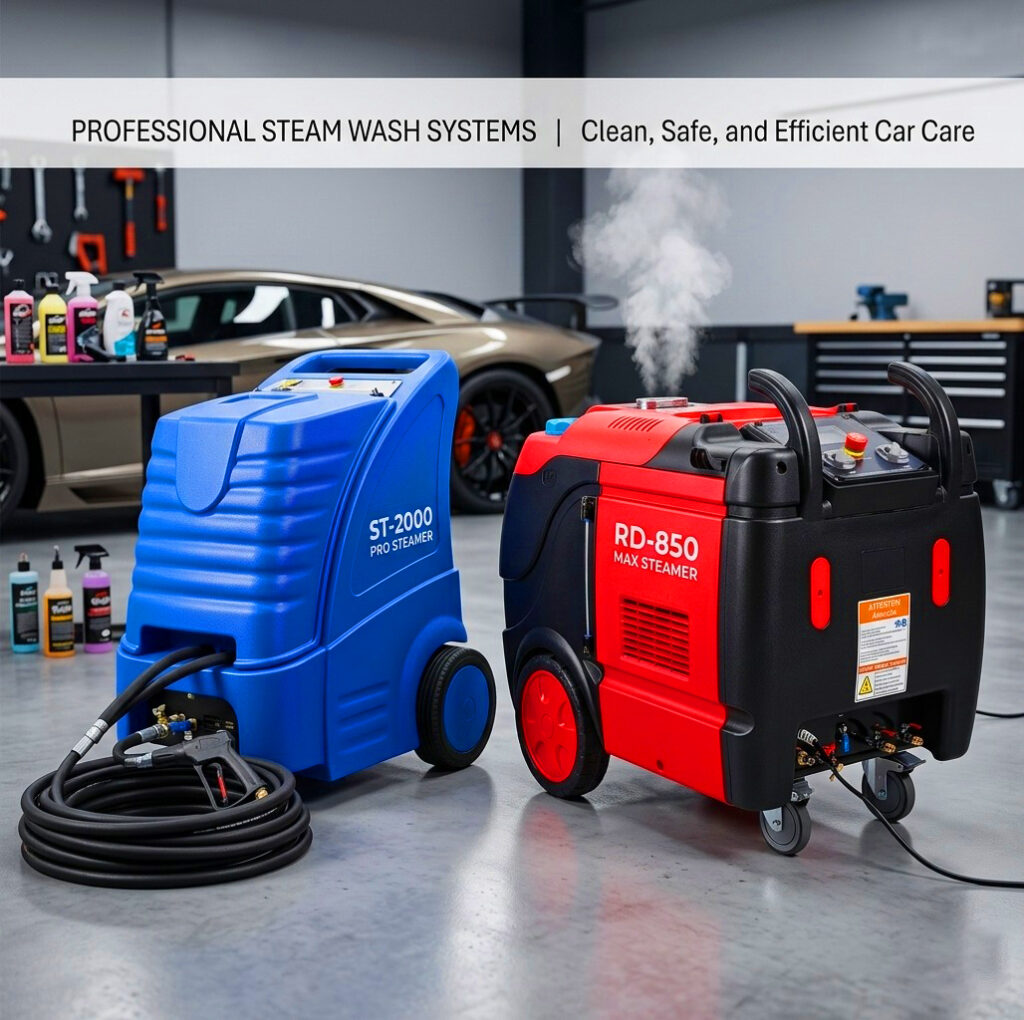 Engine decarbonizing, battery regeneration, and steam car wash systems—built for garages, fleets, and detailing businesses across India.